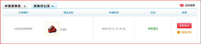 第四步:在”退換貨記錄“中查看售后狀態(tài),審核通過后可自行郵寄,填寫快遞單號。